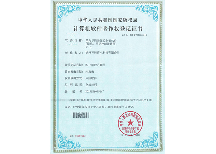 • 10軟件產品登記證書——和緯信電HSCD-2單向導通控制器軟件V1.3